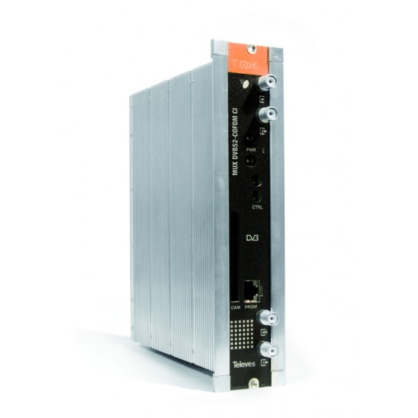 Trasmodulatore che genera un Multiplex COFDM a partire dalla multiplazione di servizi disponibile su un massimo di 3 transponders SAT differenti. Questi possono essere estratti da 2 satelliti differenti (2 ingressi SAT-IF indipendenti), o da un solo satellite utilizzando anche il connettore di miscelazione di ingresso come secondo ingresso.