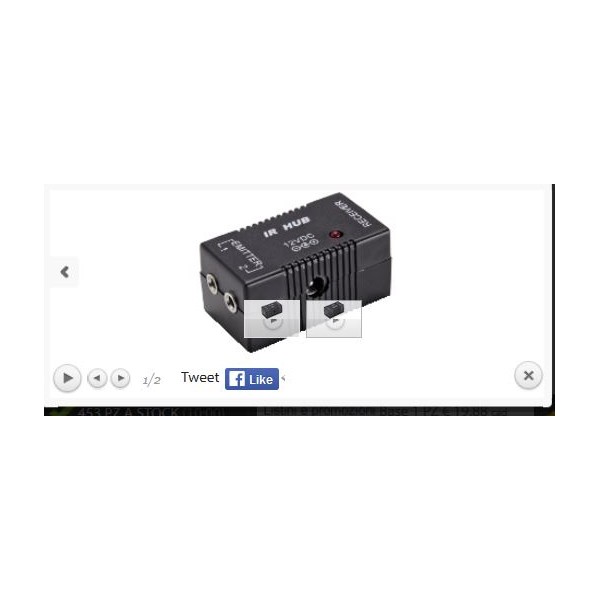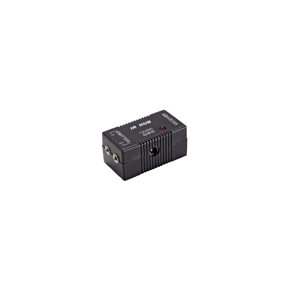 Questo ripetitore di telecomando consente il controllo di 6 diversi dispositivi (decoder HD, Blu-ray, etc.) che per qualunque motivo siano fuori portata del telecomando stesso (ad esempio perch´ inseriti in un mobile per motivi estetici e/o di sicurezza), tramite l’esposizione di un semplice sensore IR. L'hub IR fornito dispone di due uscite per i trasmettitori da 3 sensori ciascuno. Alimentatore 12Vcc 0,2A incluso.