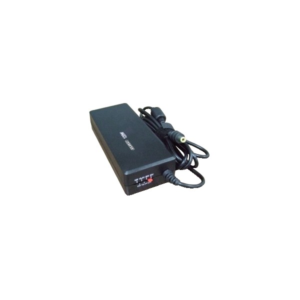 Alimentatore switching per NoteBook a tensione variabile da 15 a 24Vcc, 120W max con 9 spinotti intercambiabili. La tecnologia switching garantisce leggerezza e massima portabilità. Supporta tensioni di: 15 / 16 / 18 / 19 / 20 / 24Vcc (18 è utilizzabile anche come 18,5 e 19 è utilizzabile anche come 19,5). Potenza massima 120W (da 5 a 8 A). Gli spinotti intercambiabili consentono l'uso con le più svariate marche di NoteBook (Sony, Samsung, Sharp; NEc; Toshiba; HP/compaq; compaq; Acer; Delta; IBM; LiteOn; Gateway; Dell; Apple; HP). Dotato di funzione di controllo del sovraccarico e del surriscaldamento, e di protezione da cortocircuito.